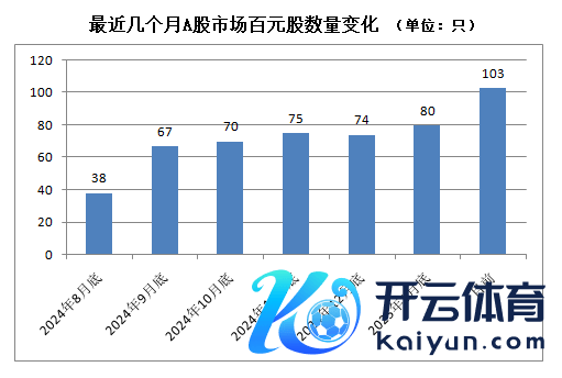 跟着A股商场情随事迁,A股商场百元股数目正在束缚增多,限度现在已达到103只,数目较半年前大增逾170%。